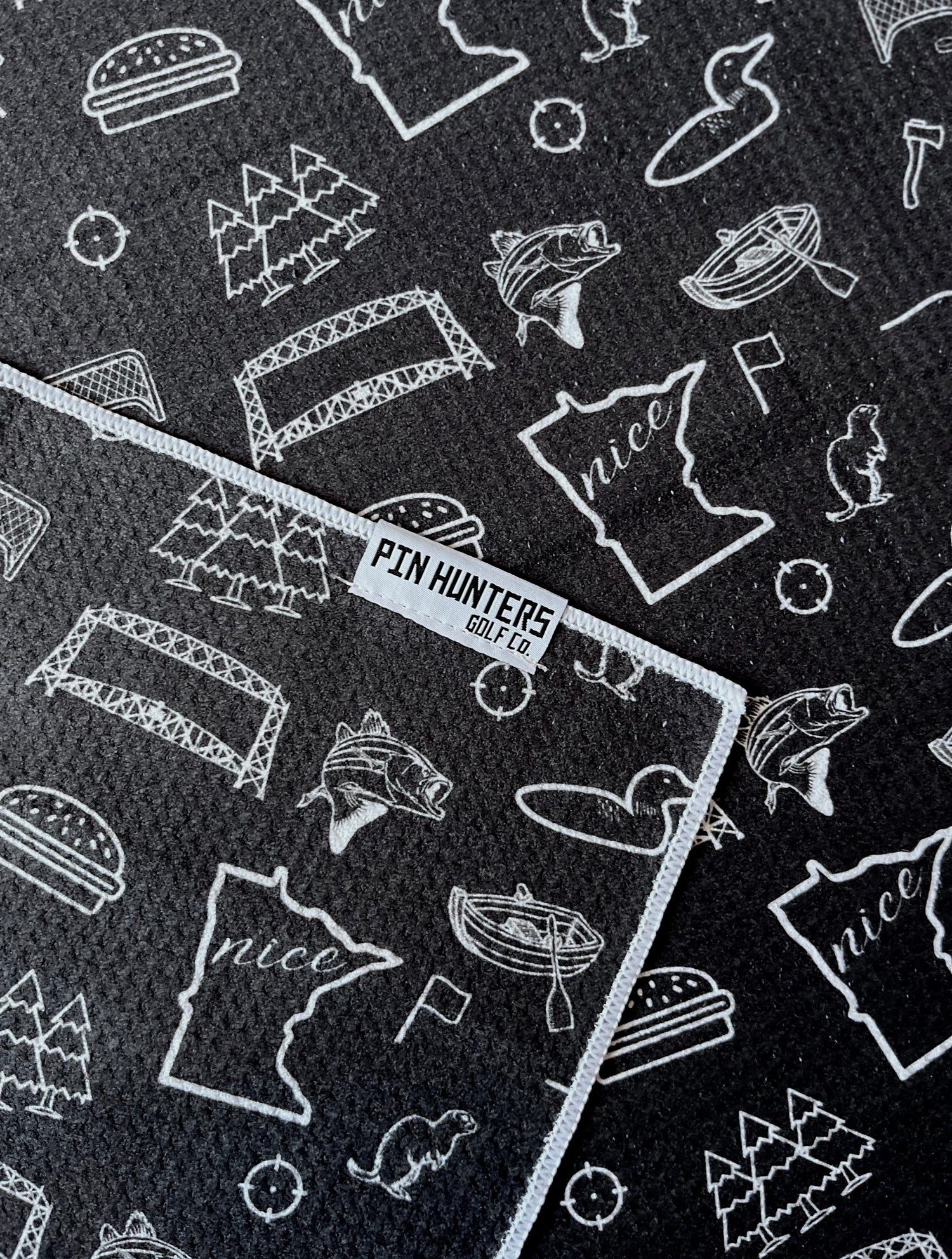 State-themed patterns in crisp white icons against a black backdrop. Elevate your game with a touch of understated elegance, or gift one to a fellow golfer!
