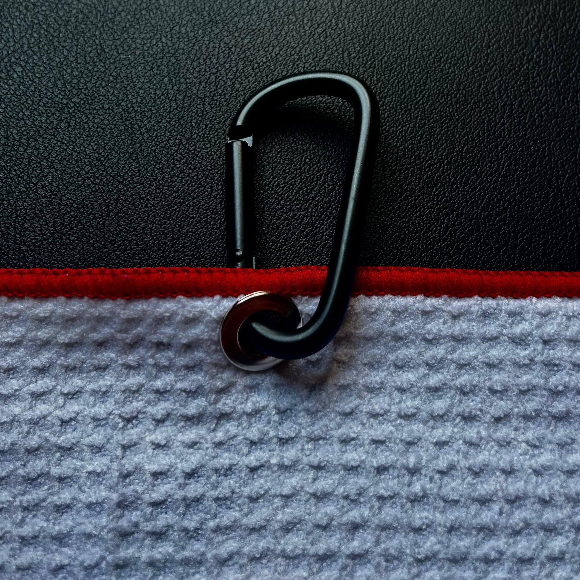 Love the California flag and the beautiful design and graphics of this towel. Think the golfers in my family will love the quality, thickness and handy carabiner clip which appears to be very well made. It was also packaged nicely and ready for gift giving. Highly recommend.